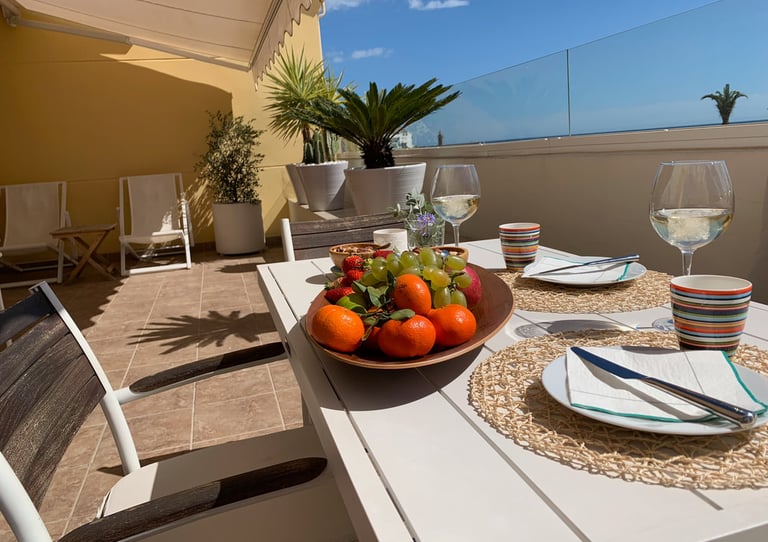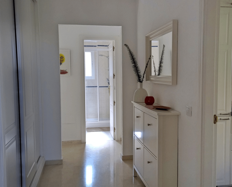 Lägenheten har en stor terrass i sydvästläge med sol från morgon till kväll. Här finns terrassmarkiser om ni föredrar skugga, solstolar och terrassmöbler. Härifrån har ni en magnifik havsutsikt, utsikt mot Esteponas populära hamn och marina med ett antal bra barer och resturanger.