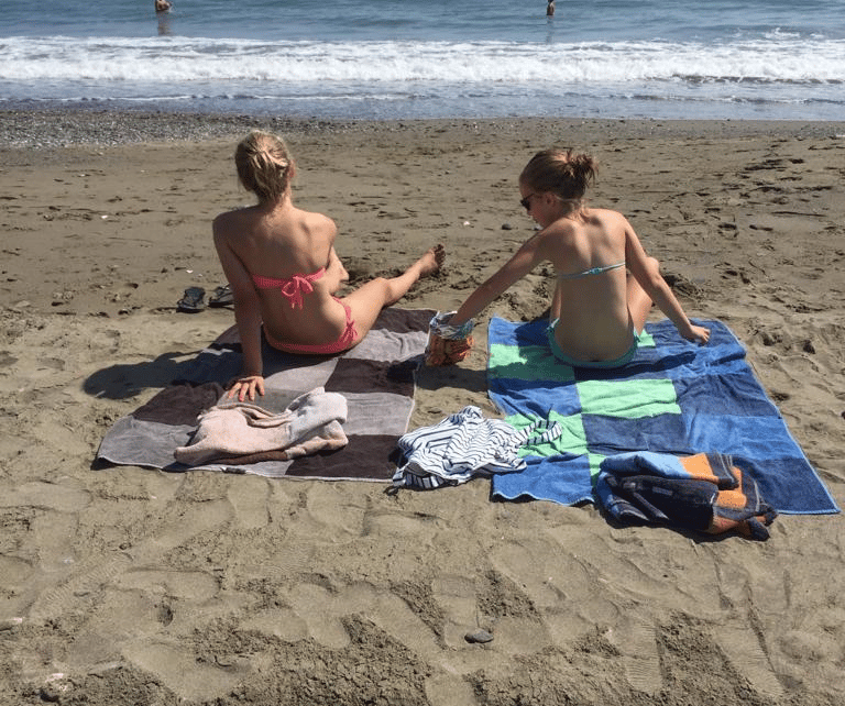 Blått flagg, den 2 km lange Playa de la Rada mot øst og den lune Playa del Cristo mot vest.