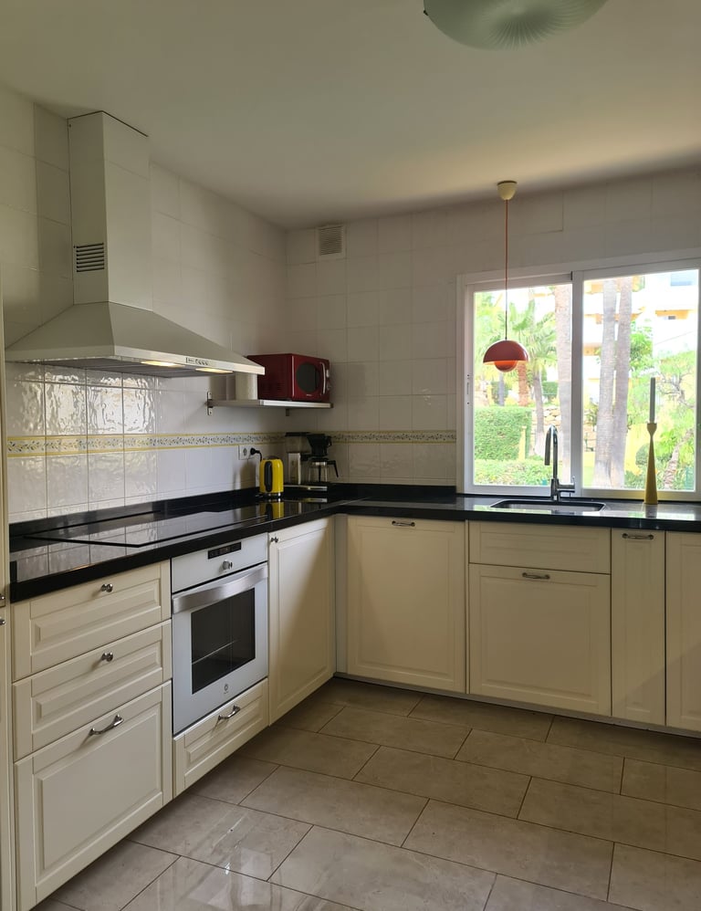 Lägenheten har en stor terrass i sydvästläge med sol från morgon till kväll. Här finns terrassmarkiser om ni föredrar skugga, solstolar och terrassmöbler. Härifrån har ni en magnifik havsutsikt, utsikt mot Esteponas populära hamn och marina med ett antal bra barer och resturanger.